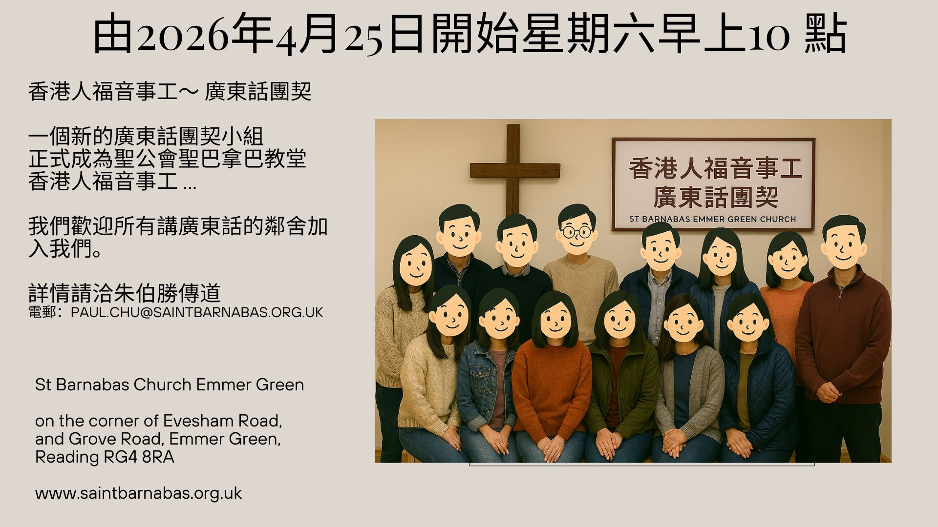 A new Cantonese Fellowship Group becomes part of Church of England St Barnabas Emmer Green Church Hong Kongers Ministry – we welcome all neighbours speaking Cantonese to join us.